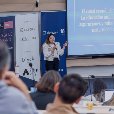 La jornada comenzó con una charla a cargo de Pilar Wiegand, académica de la Escuela de Gobierno de la UAI, que ahondó en la transición demográfica que experimenta Chile y los comportamientos asociados a estos cambios. Aún con familias más pequeñas, resaltó que al observar por cohortes, las mujeres de 40 años, por ejemplo, reportan haber querido tener más hijos de los que tuvieron. Este tipo de evidencia, destacó Wiegand, muestra que hay espacio para que las políticas públicas actúen y posibiliten que quienes desearían ser madres de más niños puedan cumplir aquel deseo.