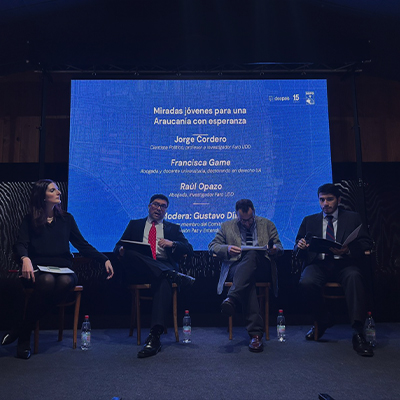 El panel “Miradas jóvenes para una Araucanía con esperanza”, en tanto, reunió a voces de nuevas generaciones: Jorge Cordero, cientista político e investigador de Faro UDD; Francisca Game, abogada y docente universitaria; y Raúl Opazo, abogado e investigador de Faro UDD. Este espacio fue moderado por Gustavo Díaz, abogado y exmiembro del Comité de Expertos de la Comisión Paz y Entendimiento.