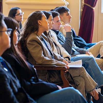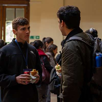 Reconectar con la vocación pública y la convicción de que los proyectos colectivos son el camino para una sociedad más justa y cohesionada fueron ideas que inspiraron este enriquecedor día repleto de actividades. Todo comenzó con una motivadora charla del abogado y actor Ignacio Navarrete, quien destacó las ganas de actuar que vio en los asistentes: “Cuando hago charlas vocacionales, uno ve cuáles son los niños y niñas que tienen ese fueguito. Acá, es una sala de ese fuego. Están listos para servir”.